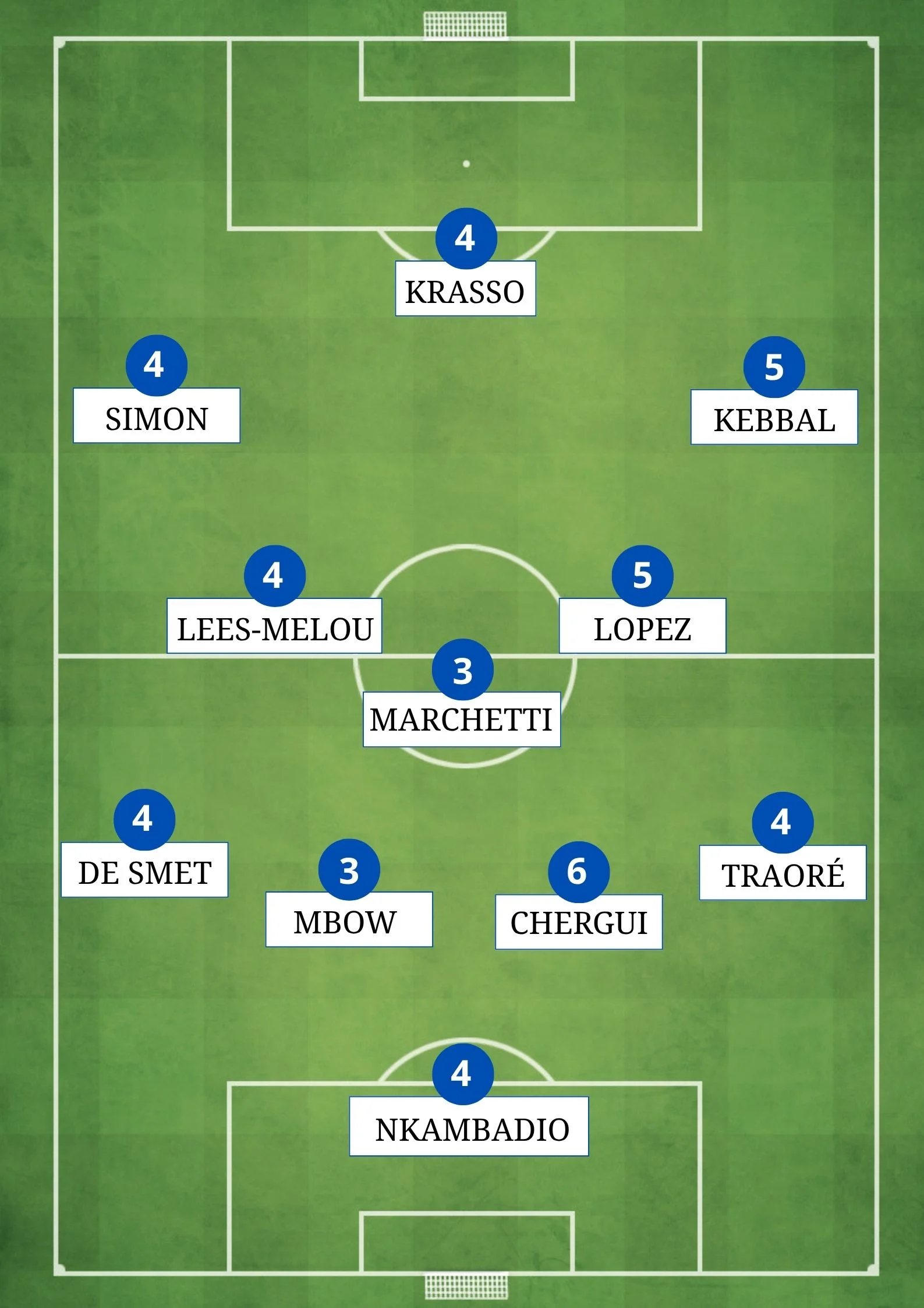 Homme du match côté Parisien – CHERGUI – 6 Titulaire surprise à la place d’Otavio, il n’a pas raté le coche; Buteur sur l’égalisation parisienne, il a eu le mérite de monter aux avant-postes quand les occasion se présentaient. En tant que défenseur central, il a été plus solide que Mbow, mais trop impuissant sur le premier but. Redevenu arrière droit après la pause, il est resté solide et dur sur l’homme, quitte à laisser l’adversaire au sol. Il s’est même permis un bon centre à la 78e qui aurait du trouvé preneur.