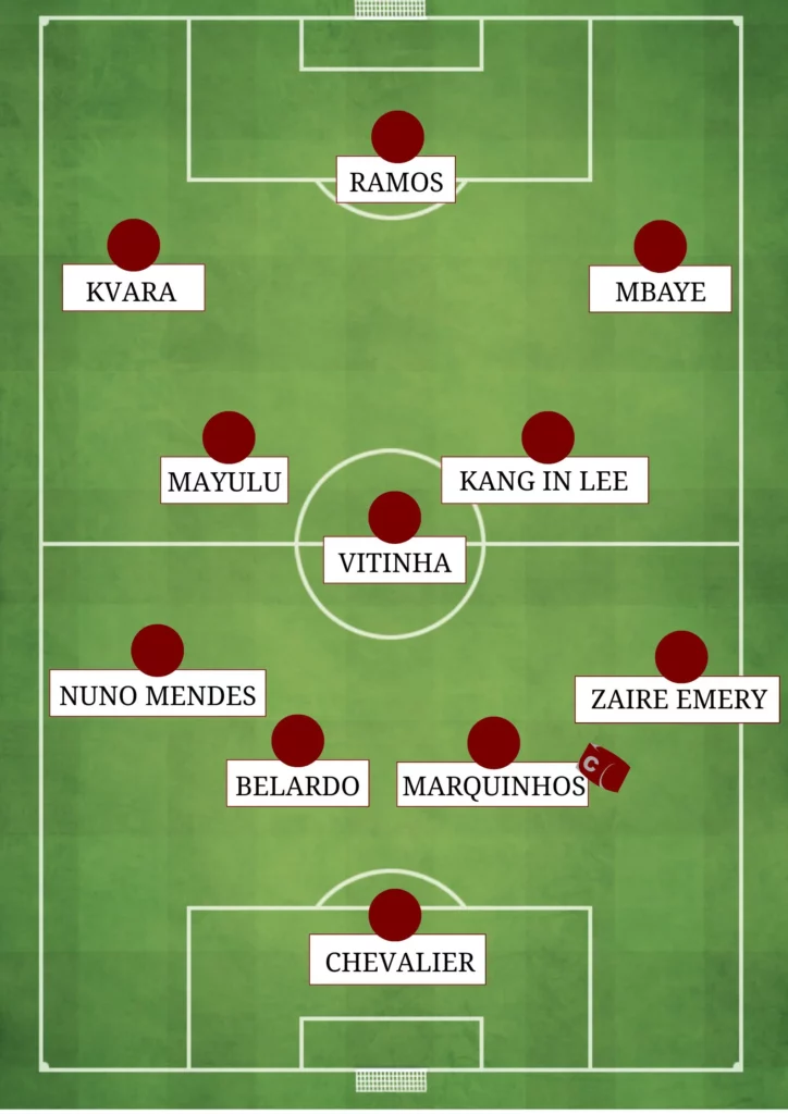 Jouer sans Vitinha et Neves, c’est craindre le pire. Une fois encore, Vitiniha devrait donc jouer la tour de contrôle au plus grand plaisir de son coach. Pour l’épauler, Mayulu et Kang In Lee tiennent fermement la corde. Les deux joueurs affichent une bonne dynamique depuis plusieurs matchs.