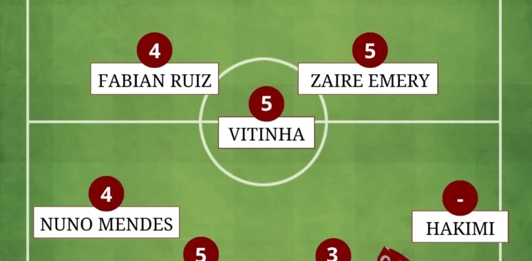 HAKIMI – Non noté Avant le tacle effroyable de Luis Diaz qui l’a forcé à quitter le terrain, le Marocain avait été en difficulté face au Colombien. Offensivement, il a délivré un excellent centre pour Fabian Ruiz. Remplacé par MAYULU – 3 (46ème). Le Titi n’a pas réussi à peser sur la rencontre et l’a traversé comme une ombre.