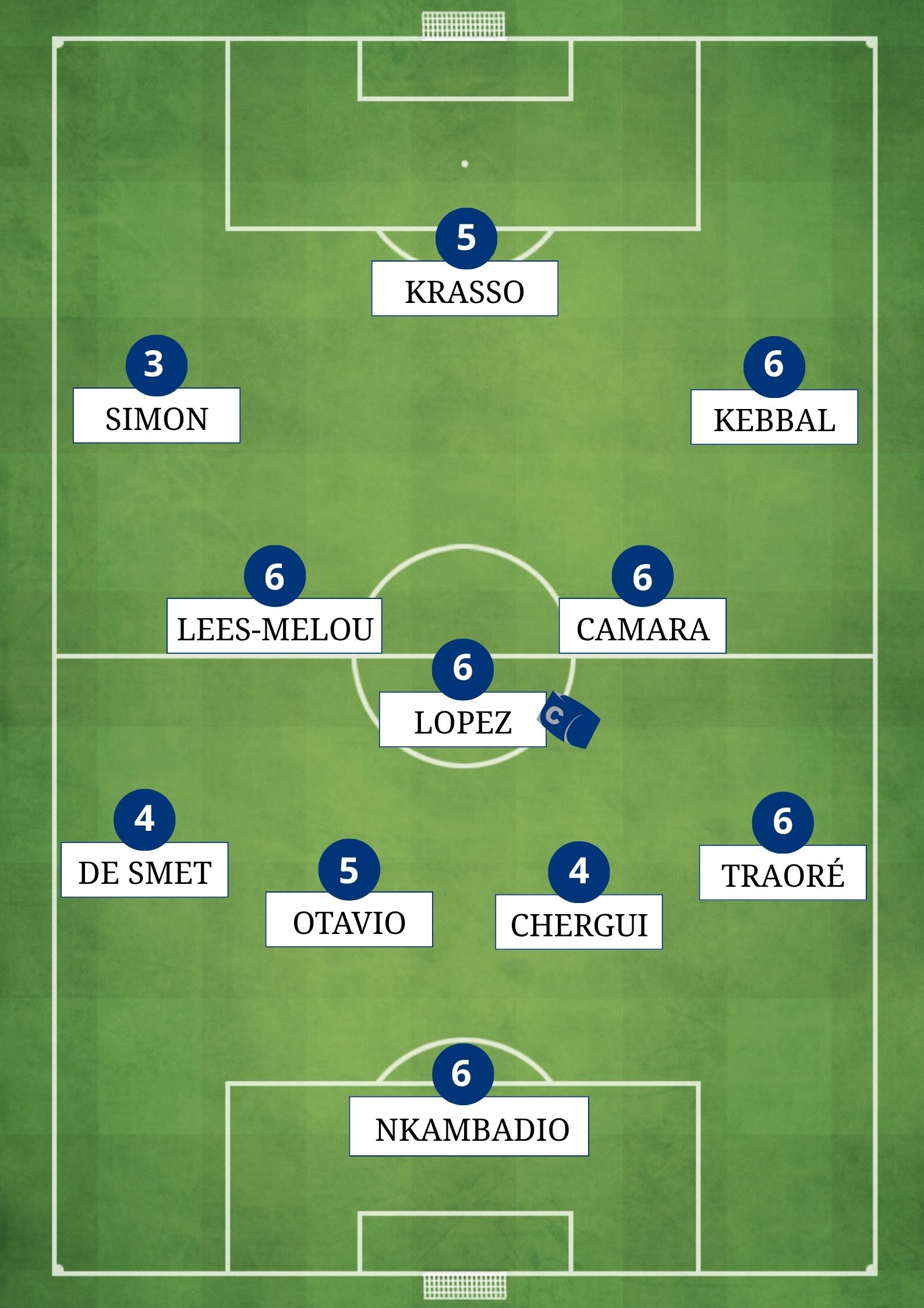 Un peu en dessous de ses compères du milieu, PLM a fait le ménage tant bien que mal. Sa frappe victorieuse sauve son match. Guerrier, il n’hésite pas à haranguer ses partenaires pour continuer à jouer vers l’avant. Taulier. Remplacé par Marchetti (82e) de retour de punition.